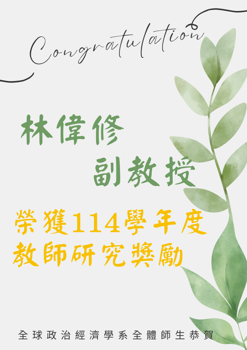 恭賀林偉修副教授榮獲114學年度教師研究獎勵